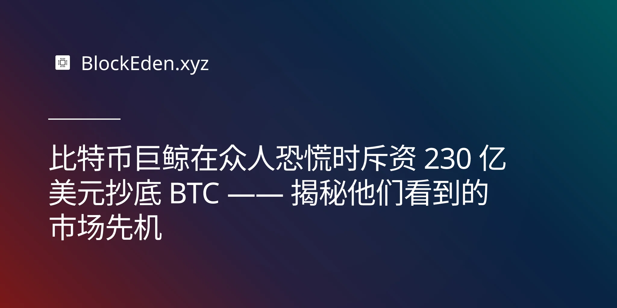 比特币巨鲸在众人恐慌时斥资 230 亿美元抄底 BTC —— 揭秘他们看到的市场先机