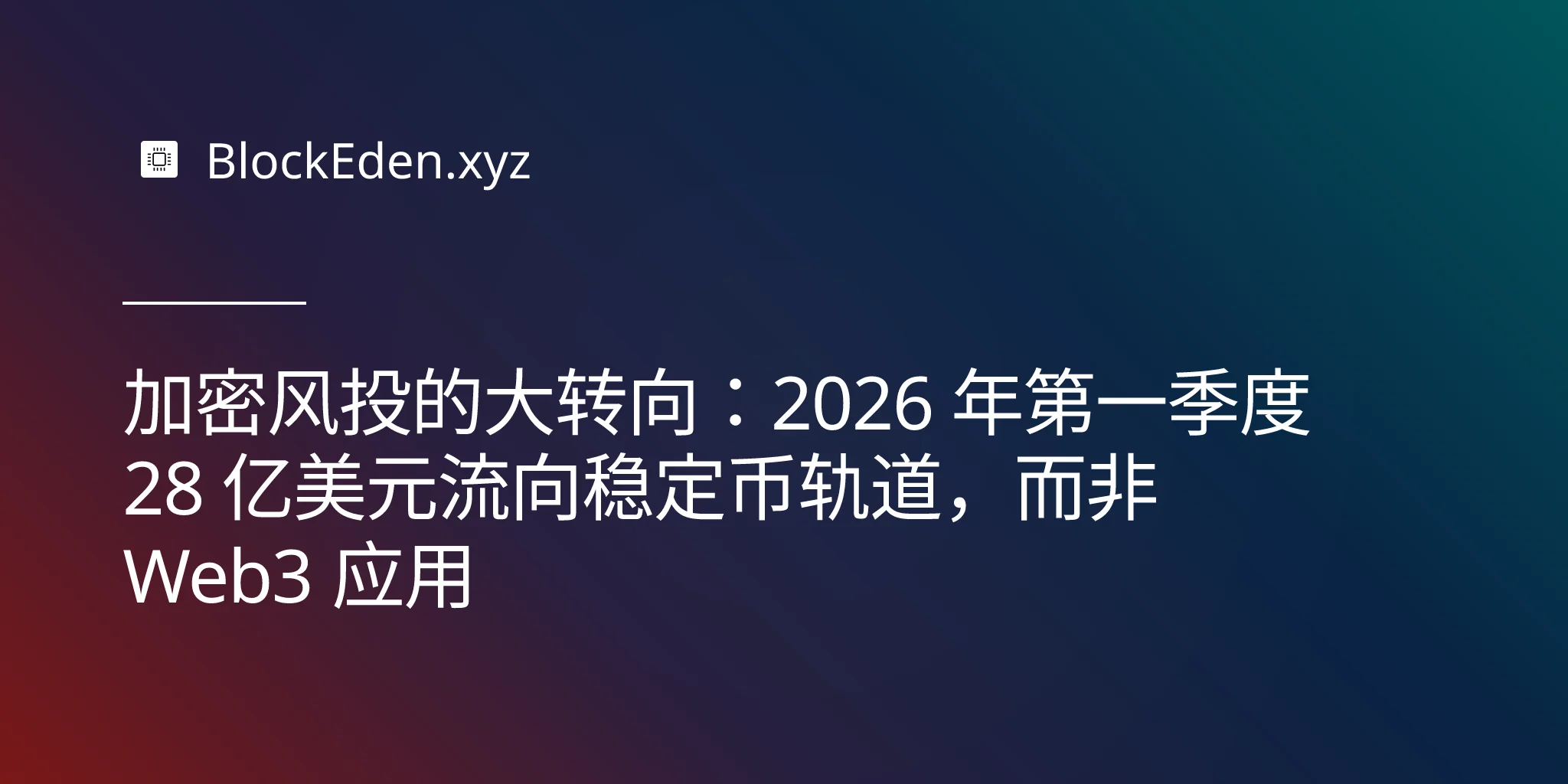 加密风投的大转向:2026 年第一季度 28 亿美元流向稳定币轨道,而非 Web3 应用