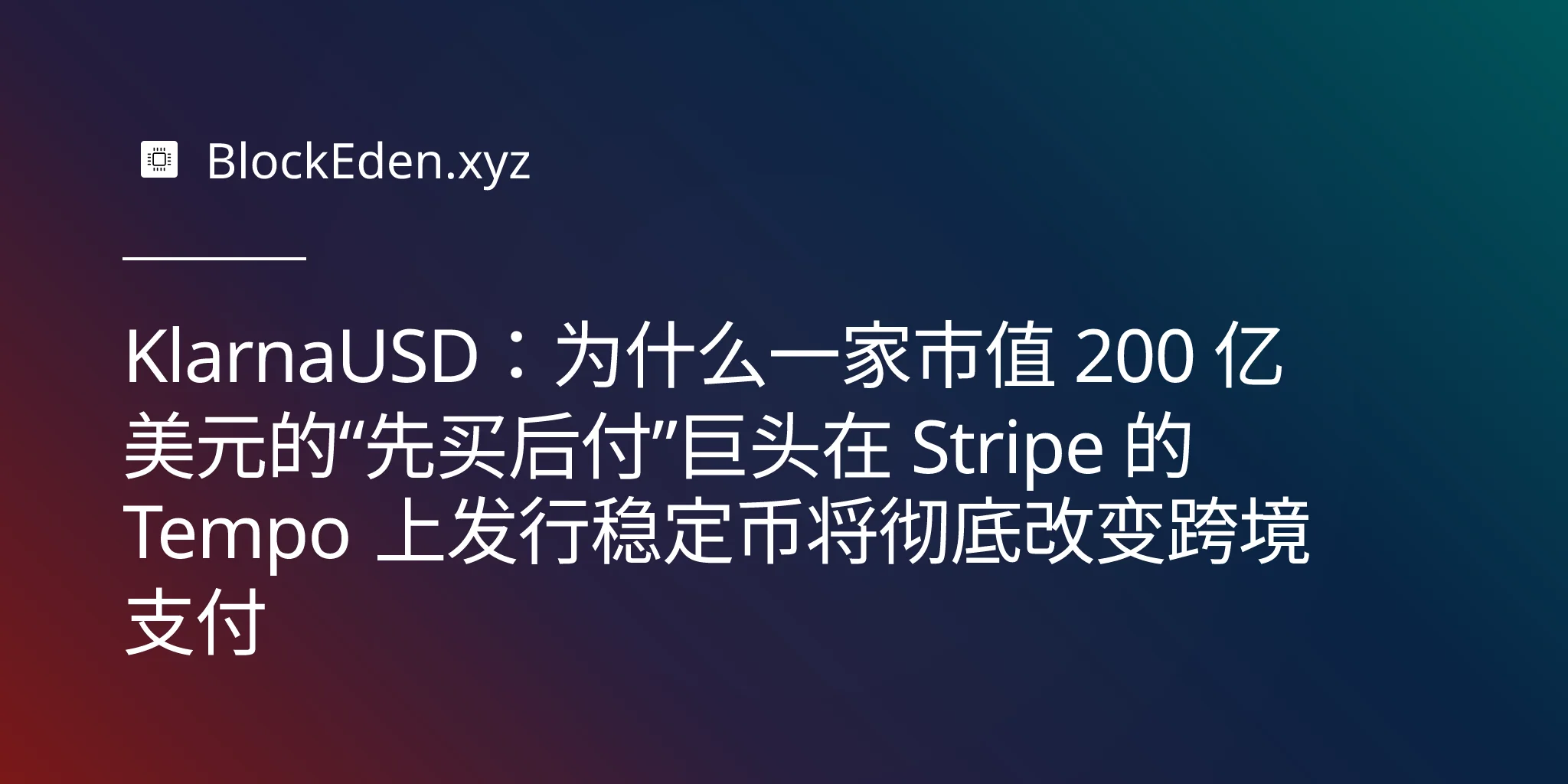 瑞典金融科技巨头 Klarna 拥有 1.14 亿活跃客户,年商品交易总额(GMV)达 1050 亿美元,即将成为第一家在主流支付区块链上发行稳定币的银行。KlarnaUSD 基于 Stripe 和 Paradigm 的 Tempo 网络构建,它不仅仅是另一个美元代币——它是对全球商业中每年榨取 1200 亿美元跨境支付手续费的战略性反击。