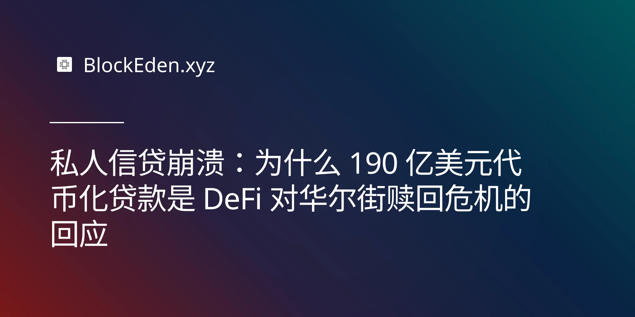 私人信贷崩溃:为什么 190 亿美元代币化贷款是 DeFi 对华尔街赎回危机的回应