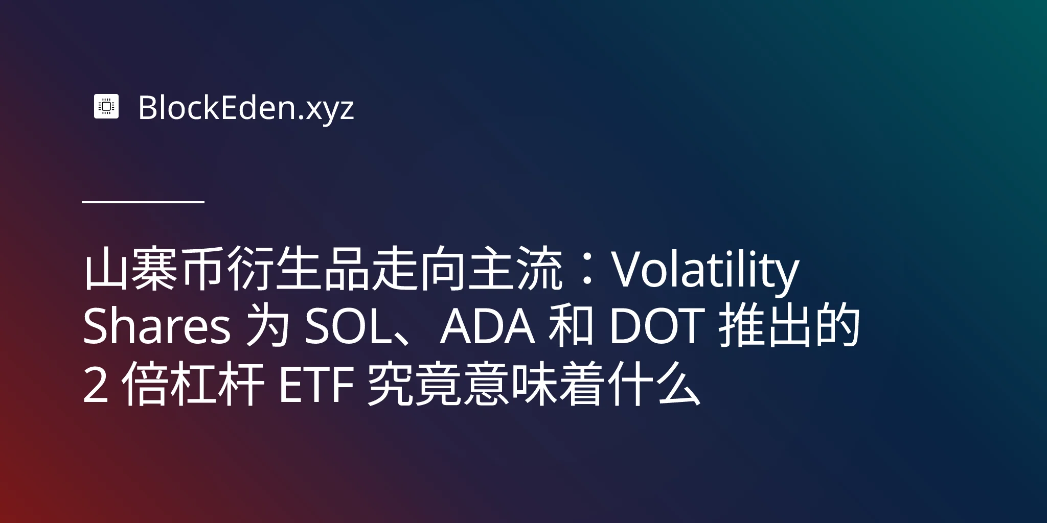 山寨币衍生品走向主流:Volatility Shares 为 SOL、ADA 和 DOT 推出的 2 倍杠杆 ETF 究竟意味着什么
