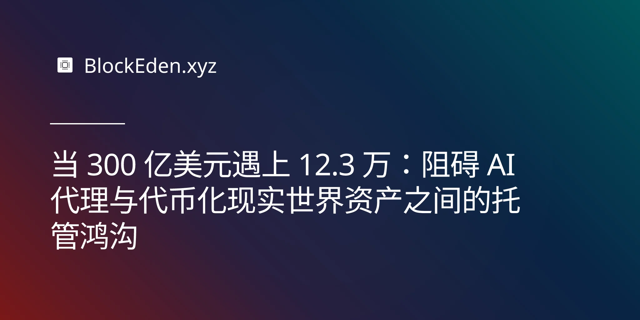 当 300 亿美元遇上 12.3 万:阻碍 AI 代理与代币化现实世界资产之间的托管鸿沟