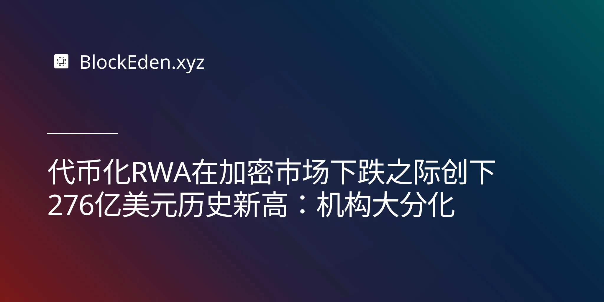 代币化RWA在加密市场下跌之际创下276亿美元历史新高:机构大分化