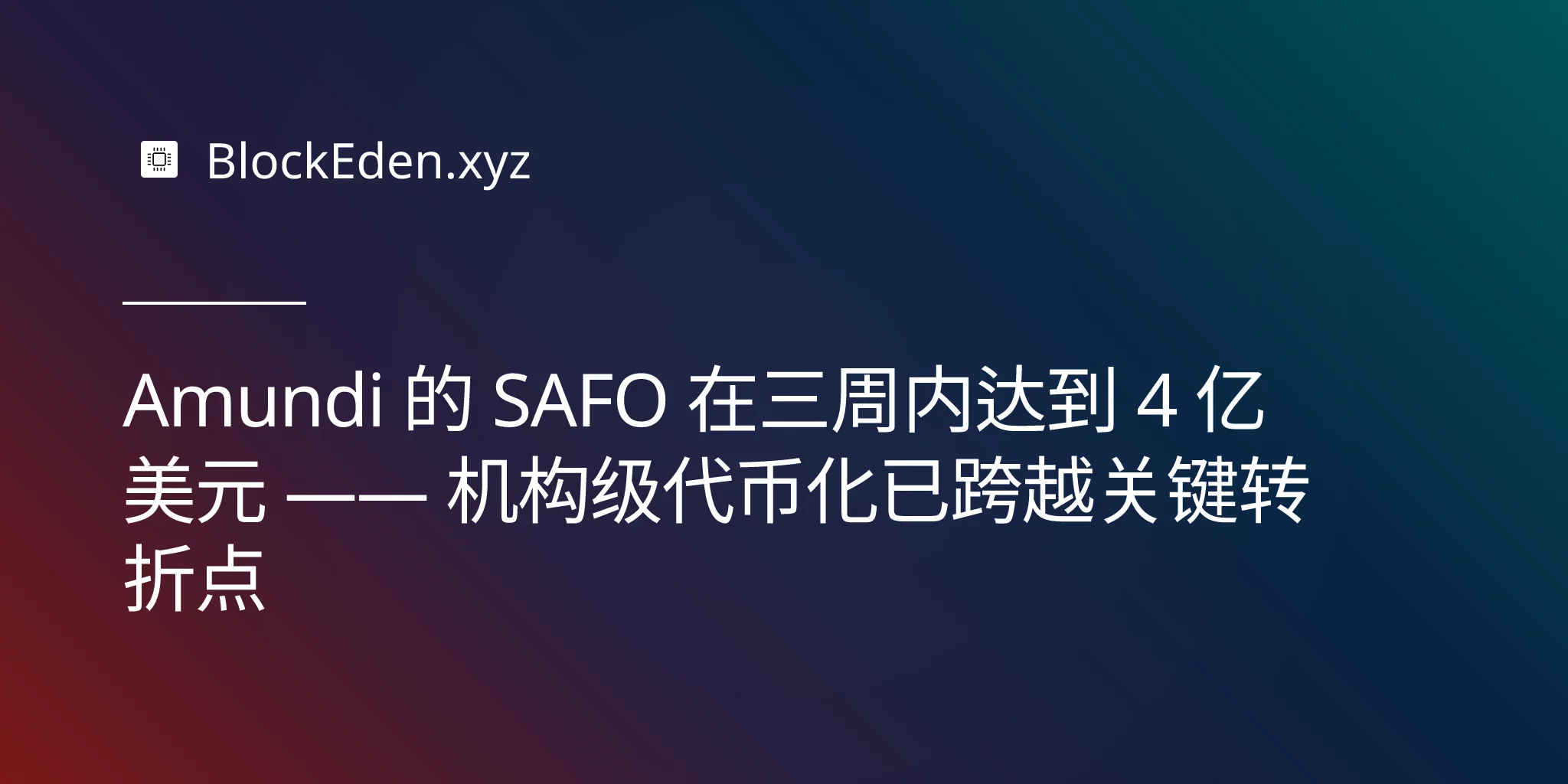 Amundi 的 SAFO 在三周内达到 4 亿美元 —— 机构级代币化已跨越关键转折点