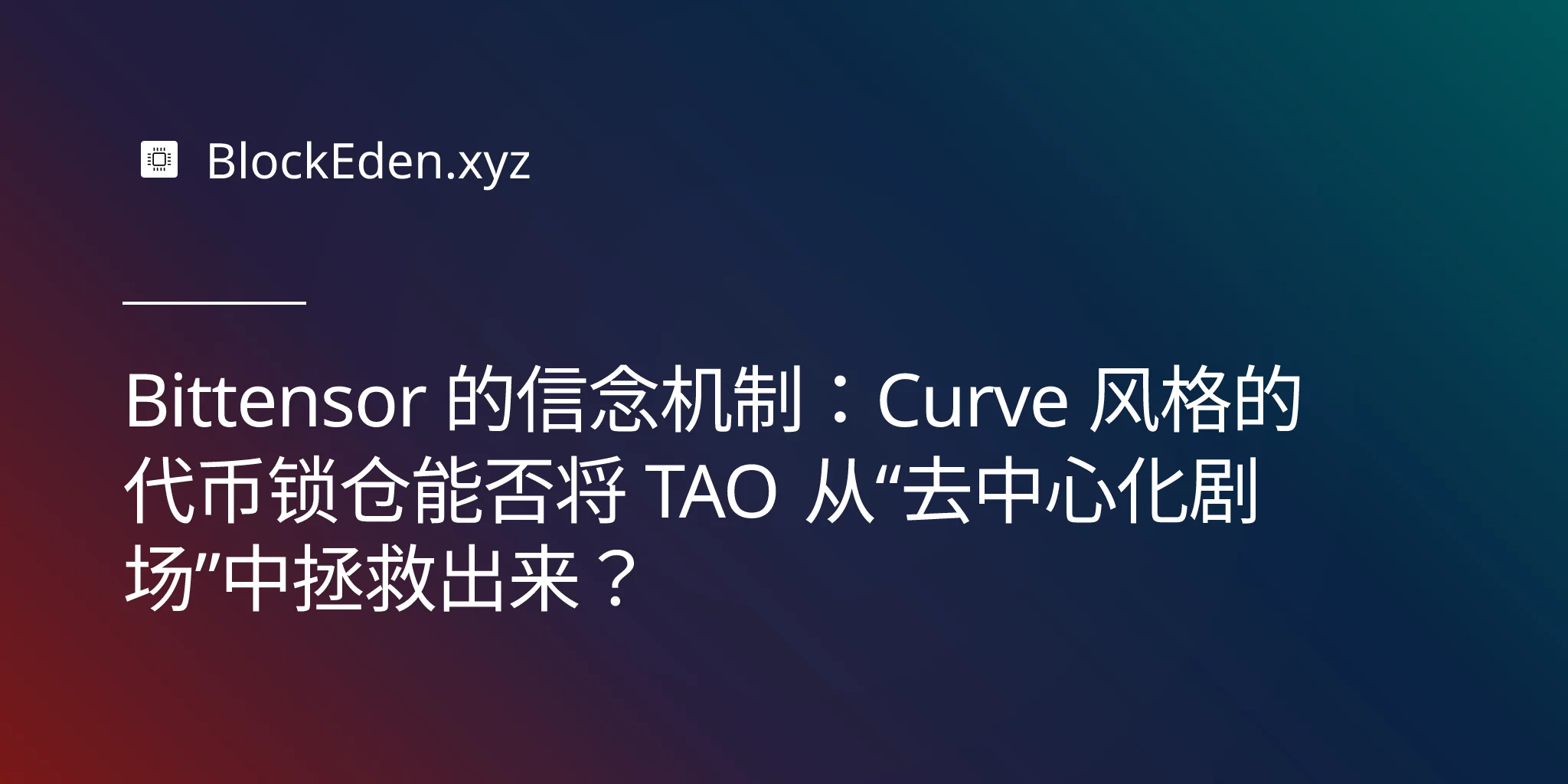 Bittensor 的信念机制:Curve 风格的代币锁仓能否将 TAO 从“去中心化剧场”中拯救出来?
