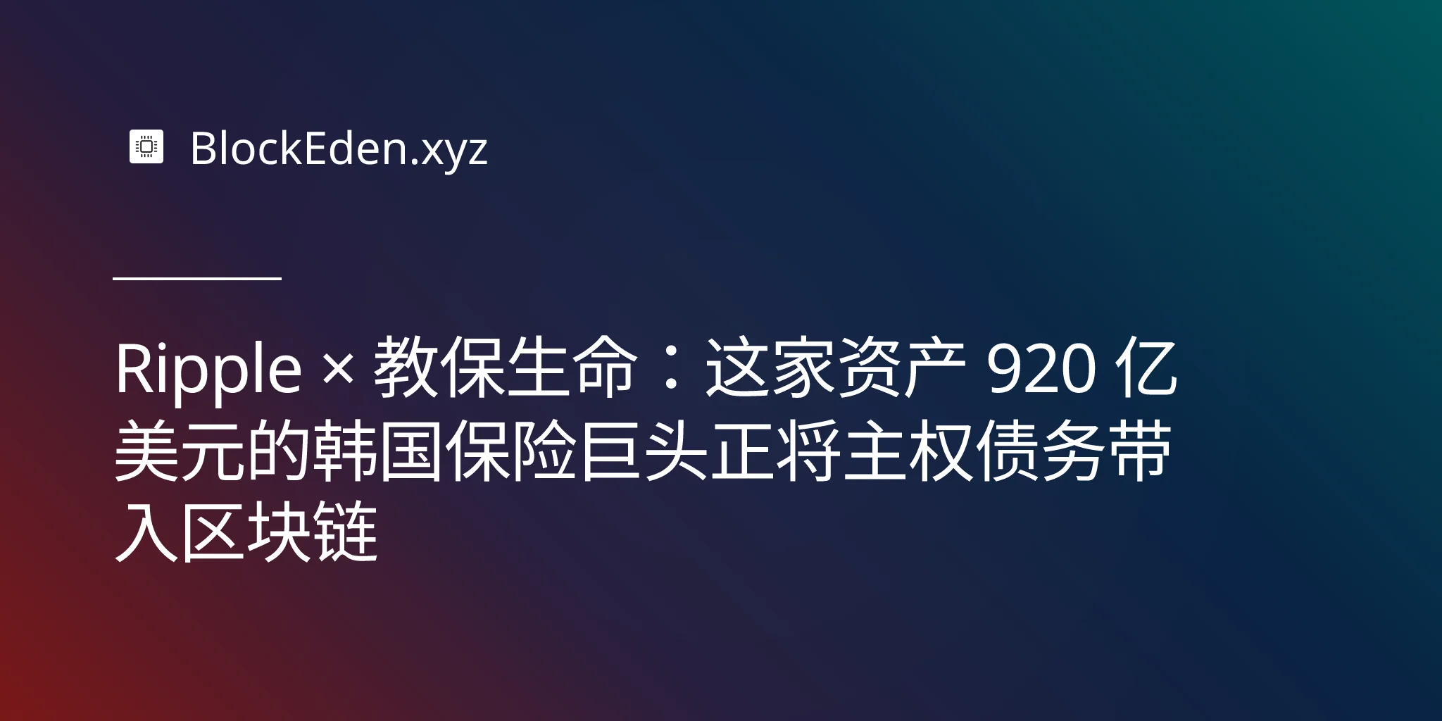 Ripple × 教保生命:这家资产 920 亿美元的韩国保险巨头正将主权债务带入区块链