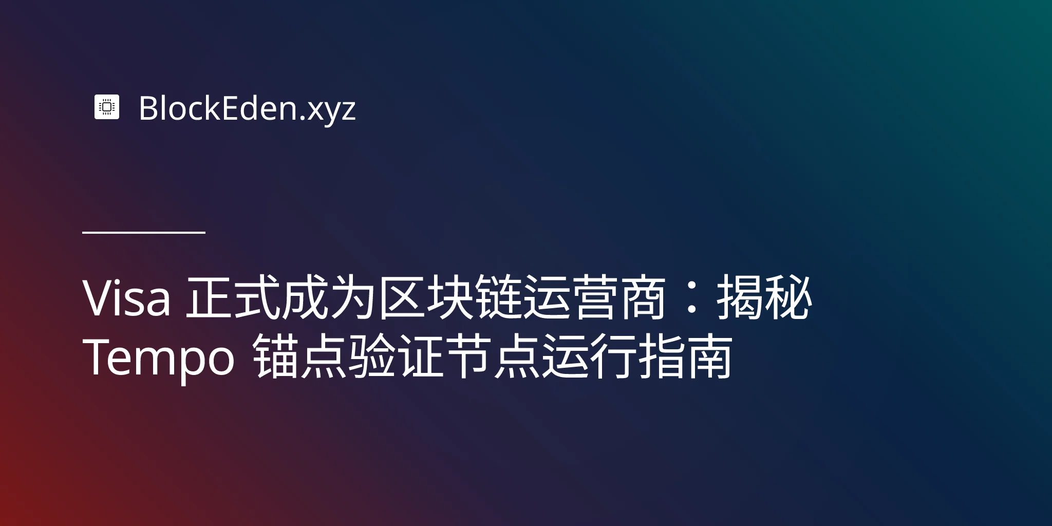Visa 正式成为区块链运营商:揭秘 Tempo 锚点验证节点运行指南