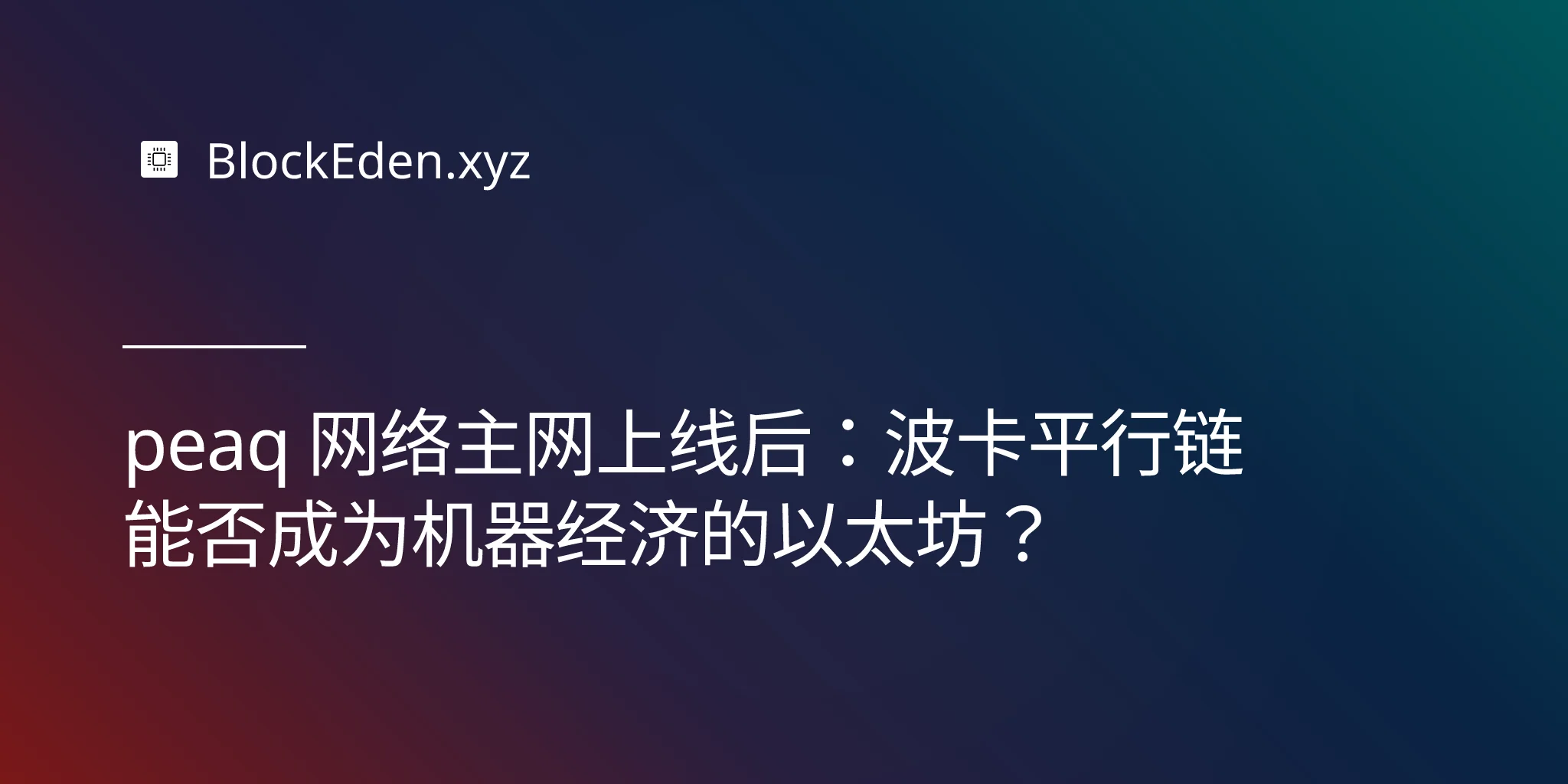 peaq 网络主网上线后:波卡平行链能否成为机器经济的以太坊?