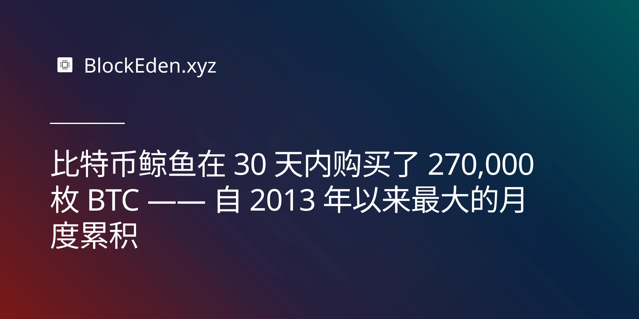 比特币鲸鱼在 30 天内购买了 270,000 枚 BTC —— 自 2013 年以来最大的月度累积