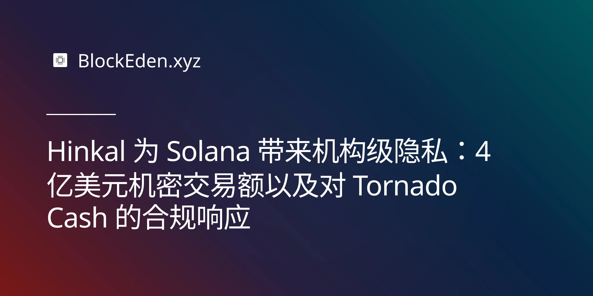 Hinkal 为 Solana 带来机构级隐私:4 亿美元机密交易额以及对 Tornado Cash 的合规响应