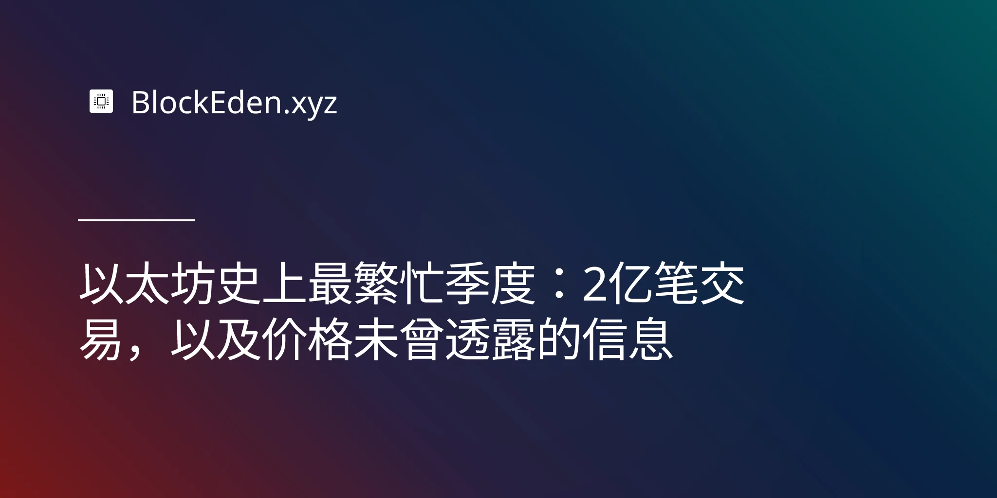 以太坊史上最繁忙季度:2亿笔交易,以及价格未曾透露的信息