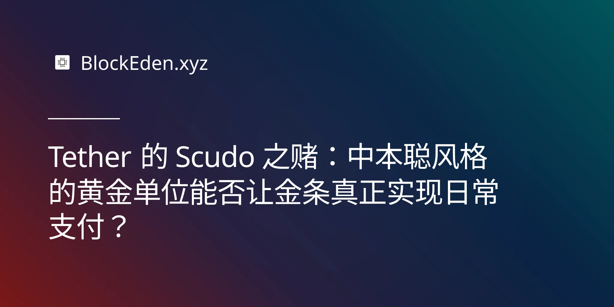 Tether 的 Scudo 之赌:中本聪风格的黄金单位能否让金条真正实现日常支付?