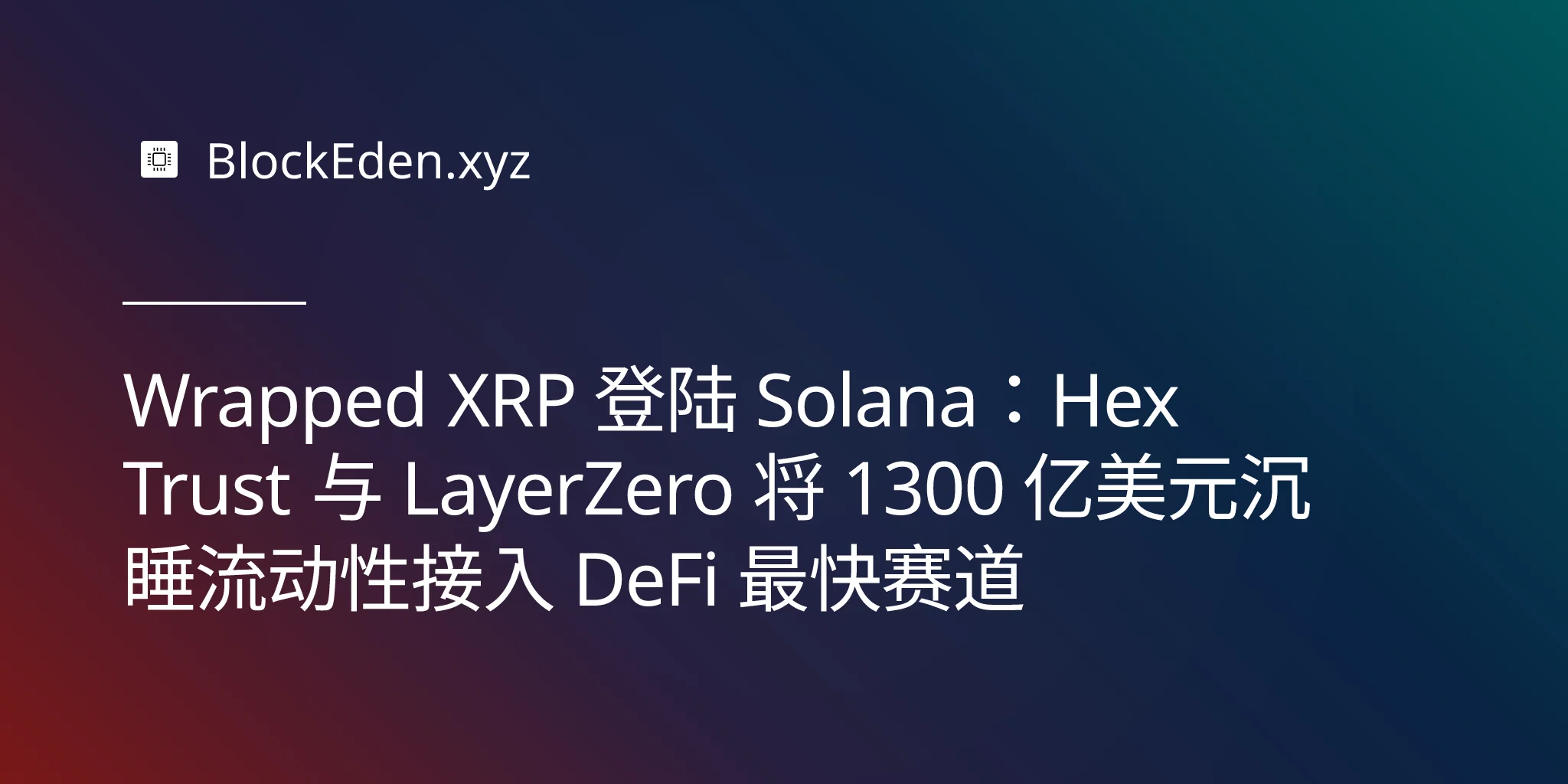 Wrapped XRP 登陆 Solana:Hex Trust 与 LayerZero 将 1300 亿美元沉睡流动性接入 DeFi 最快赛道