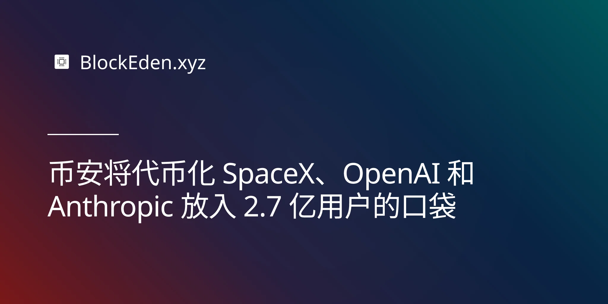 币安将代币化 SpaceX、OpenAI 和 Anthropic 放入 2.7 亿用户的口袋