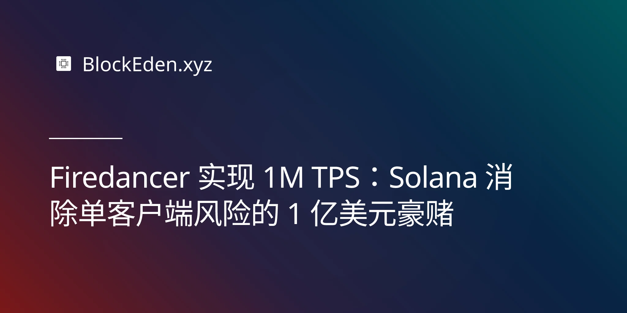 Firedancer 实现 1M TPS:Solana 消除单客户端风险的 1 亿美元豪赌