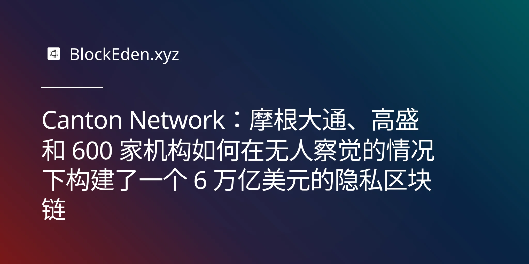 Canton Network:摩根大通、高盛和 600 家机构如何在无人察觉的情况下构建了一个 6 万亿美元的隐私区块链
