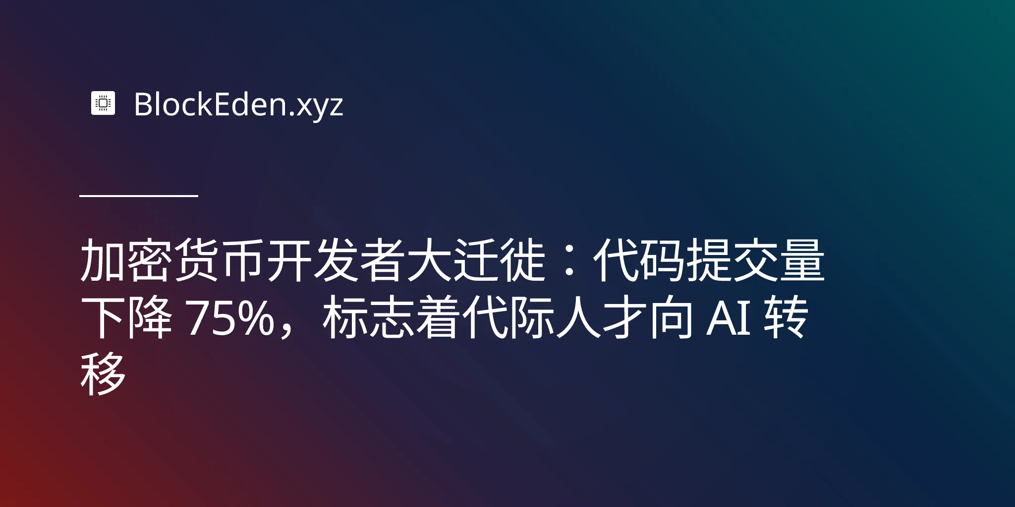 加密货币开发者大迁徙:代码提交量下降 75%,标志着代际人才向 AI 转移
