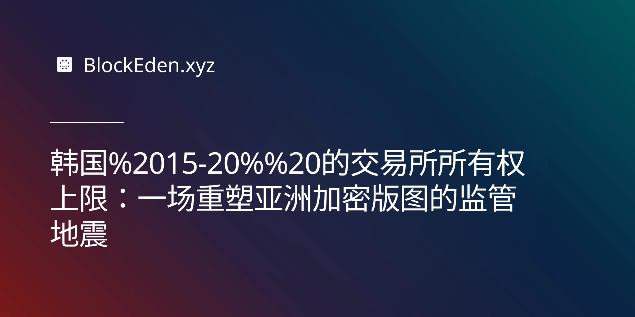 韩国 15-20% 交易所持股上限:重塑亚洲加密货币格局的监管地震