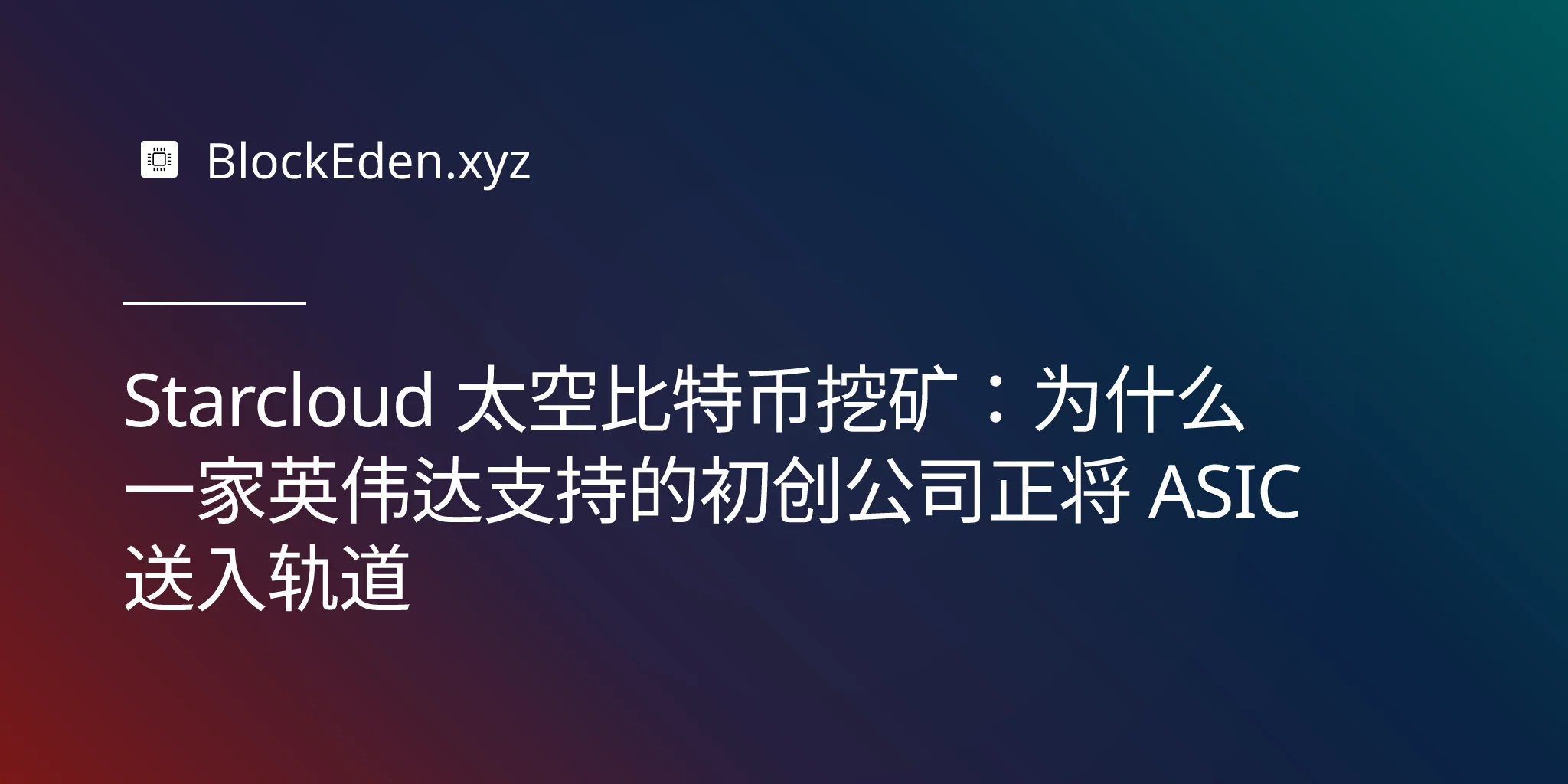 Starcloud 太空比特币挖矿:为什么一家英伟达支持的初创公司正将 ASIC 送入轨道